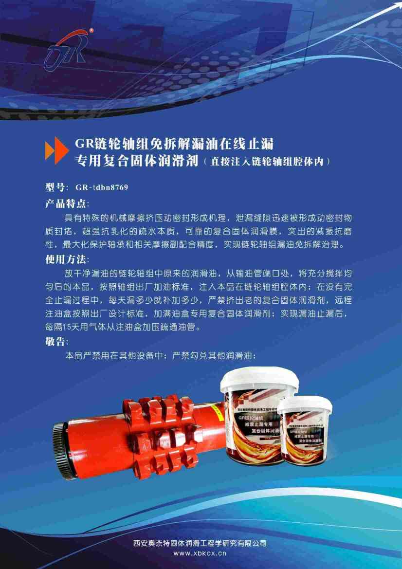 GR鏈輪軸組免拆解漏油在線止漏專用復(fù)合固體潤滑劑(直接注人鏈輪軸組腔體內(nèi))